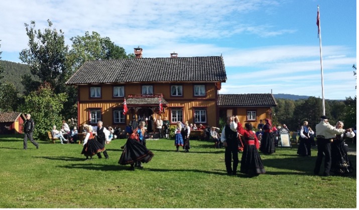 Anne Hørte i den gamle beltesakken sin og Kjell Hellstrøm, fortel frå tida med Jon Evju og Nes nasjonale dansarring. Kanskje felespel…..