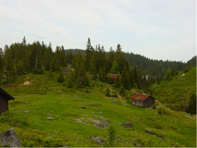 Fram til stulen gikk stien på østsiden av Hortevatnet. Den siste bekken vi gikk over hette Smørbekk. En kan tro den hadde blitt brukt til avkjøling av melkevarer. Her var det en fin steinbenk som en kunne sitte på, men det var det ikke tid til hvil nå. Vi kunne skimte fjøset. Det var godt etter en tur som hadde tatt 6-7 timer med bølingen. Ellers regna en 5 timer.